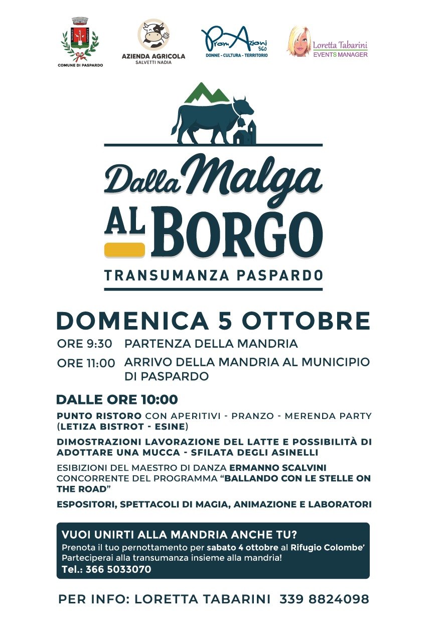 Ad attendere grandi e piccini una giornata tra stupore e divertimento nel cuore della Valle Camonica: oltre al saluto alle mandrie di ritorno nelle stalle ci saranno la sfilata degli asinelli, il pranzo e merenda Party, dimostrazioni sulla lavorazione del latte e la possibilità di “adottare” una mucca. Non mancheranno espositori, laboratori per bambini, spettacoli di magia e animazione. A completare il tutto stand gastronomici, con sfiziosi aperitivi!